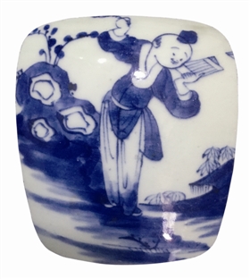 “聽(tīng)荷抱琴雅意呈,攜子撫花潤(rùn)無(wú)聲,一勾一劃詩(shī)韻在,梅蕊靜若暗香人。”這樣四塊為一組的清光緒時(shí)期青花瓷片(見(jiàn)圖),依次呈現(xiàn)在讀者眼前,青中閃白,白中顯青的釉色,生動(dòng)可愛(ài)的各姿人物,讓人詩(shī)情頓生,愛(ài)不釋手。它發(fā)色青翠明麗,思逸典雅,如同四幅中國(guó)傳統(tǒng)水墨畫,充滿了古人的智慧與雅趣。