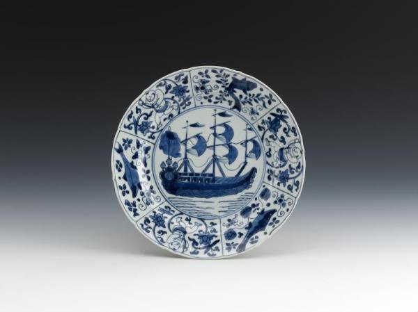 景德鎮(zhèn)窯青花帆船圖花口盤 清乾。1736—1795) 荷蘭倪漢克先生捐贈(zèng) 上海博物館藏
