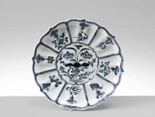 景德鎮(zhèn)窯青花蓮池雜寶紋蓮瓣形盤 元代(1271—1368年)上海博物館藏