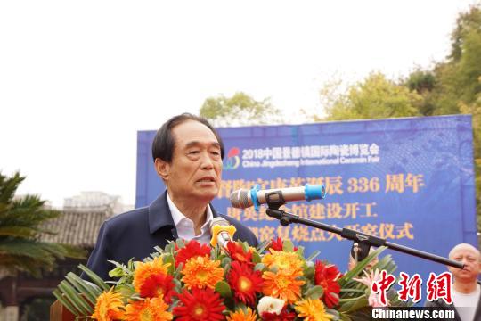 歷史學家閻崇年在“唐英紀念館”開工儀式現(xiàn)場致辭。
