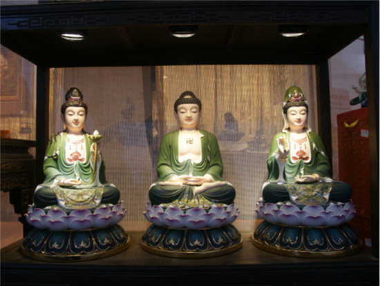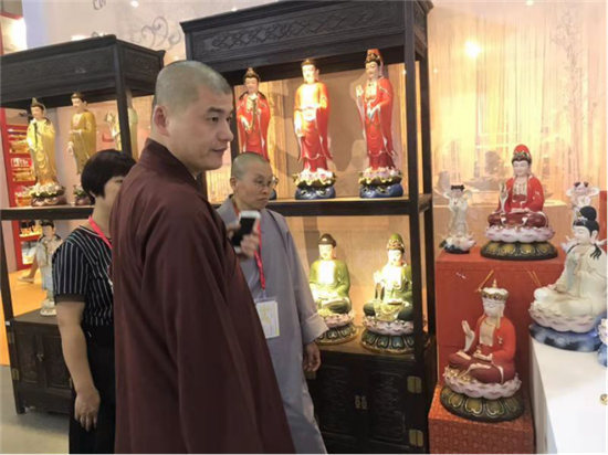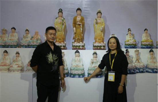 金秋相聚廈門·共襄佛禪盛會。10月18日至22日,第13屆中國廈門國際佛事用品秋季展覽會,在廈門國際會展中心隆重舉行,展出面積11萬平方米,設(shè)置國際標準展位6000個,匯聚國內(nèi)外千家佛教用品行業(yè)的品牌企業(yè),涵蓋佛教用品產(chǎn)業(yè)各類產(chǎn)品,吸引海內(nèi)外觀眾超過20萬人次,規(guī)模宏大,盛況空前,同時進行一系列豐富多彩的文化演藝活動。B4T042展館,德化縣靜心堂瓷塑藝術(shù)研究所展出了自主研發(fā)的立式或坐式的淡彩系列與極彩系列的瓷塑佛像藝術(shù)作品,吸引了廣大客商的高度重視與濃烈興致。