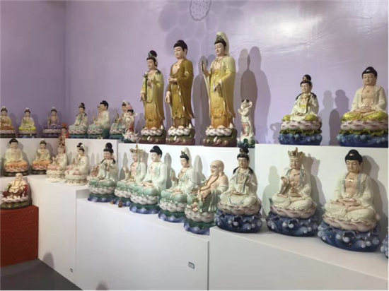 眾所周知,福建德化是聞名遐邇的世界瓷都,是世界最大的白瓷觀音生產(chǎn)基地。自“瓷圣”明朝何朝宗以來,世代傳承、名家輩出、爭奇斗艷、流光溢彩。郭桂星與愛人林寶珍也不甘示弱一起創(chuàng)造了一系列珍貴的佛禪瓷塑原創(chuàng)作品。