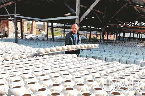 馮清芳說,以前燒柴火,一般需要8個燒火工人,要挑柴、劈柴、裝柴等工人,每一個工序都很辛苦,而且燒完一窯,龍窯需要冷卻一段時間,燒制的次品率高。自采用新能源后,陶瓷的成品率高,出貨速度又快,“最重要的是,我們山上的樹木得以保護,山綠了,空氣也好。”望著門外那綠意蔥蔥的山頭,老馮笑得眼睛都瞇在一起。