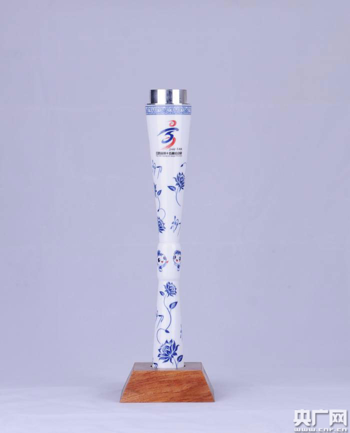 據介紹,本次陶瓷火炬的原創(chuàng)設計及設計顧問為景德鎮(zhèn)陶瓷大學的曹春生教授;鹁嬷黧w造型的設計靈感來源于一種仿青銅器造型的陳設用瓷——花觚,它的造型雋秀,端莊大方。火炬的花面設計采用傳統(tǒng)青花工藝繪制,包含了蓮花和茶花的圖案。其中蓮花象征著圣潔高雅、品德高尚,而茶花作為景德鎮(zhèn)市的市花,蘊含著景德鎮(zhèn)市市民對生活欣欣向榮的美好愿景。火炬的上部和中部分別展示了本屆省運會的會徽與吉祥物,傳統(tǒng)與創(chuàng)新彼此交融,相得益彰。