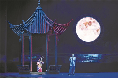 這臺(tái)晚會(huì)匯聚了諸多粵港澳地區(qū)最具代表性的民間藝術(shù)和傳統(tǒng)文化。開(kāi)場(chǎng)舞蹈《鼓舞嶺南》就以廣東代表性的高樁醒獅、英歌、錢(qián)鼓等民間藝術(shù)形式融合廣東音樂(lè),展示了嶺南人勇于創(chuàng)新、追趕潮頭的情景。民樂(lè)演奏大咖繆曉錚、譚炎健的琵琶與簫合奏《彩云追月》則用民樂(lè)與多媒體影像結(jié)合的方式呈現(xiàn)出夢(mèng)幻般的優(yōu)美畫(huà)卷。廣東歌舞劇院創(chuàng)編的舞蹈《青花瓷韻》試圖在中國(guó)舞的呼吸身法、典型動(dòng)作中勾畫(huà)出古老青花瓷器的神韻。
