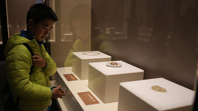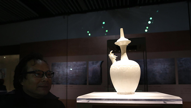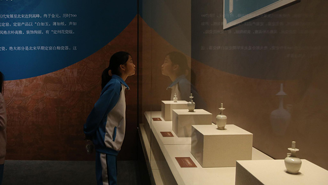 中國園林博物館,市民參觀定窯瓷器。