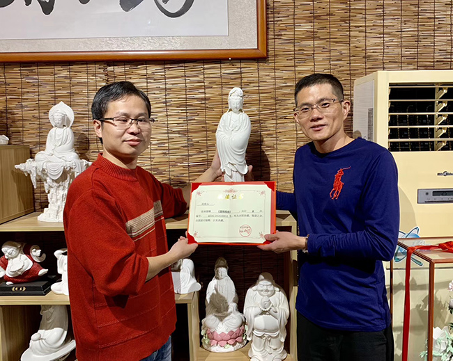 10多年潛心研習(xí)德化陶瓷文化,博采眾長,融會(huì)貫通,自成一格。2003年起從事設(shè)計(jì)工作,2006年創(chuàng)辦中華陶瓷網(wǎng)并開始大量接觸陶瓷設(shè)計(jì)、開發(fā)、銷售,與眾多當(dāng)代德化陶瓷藝術(shù)家學(xué)習(xí)交流,多次到全國陶瓷產(chǎn)區(qū)學(xué)習(xí)了解陶瓷文化,組織參加50多場次展覽,2011年創(chuàng)辦福建省德化縣博緣陶瓷文化有限公司,專業(yè)事陶瓷設(shè)計(jì)、創(chuàng)作,主要作品有佛像、人物擺件、茶器等,其所創(chuàng)作品多次榮獲國內(nèi)外金獎(jiǎng),深受好評。