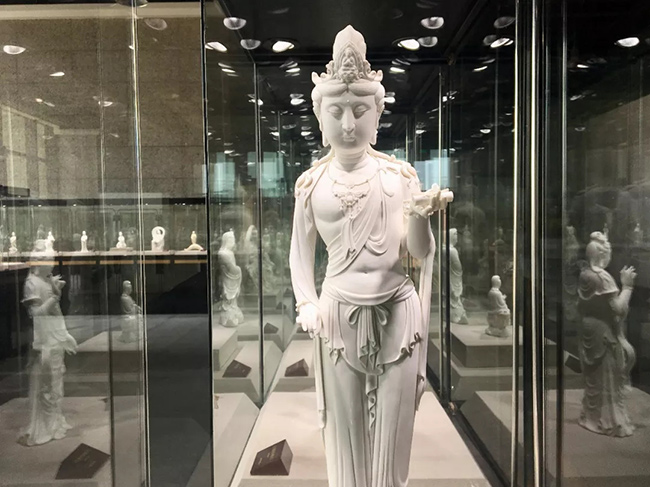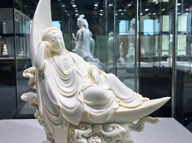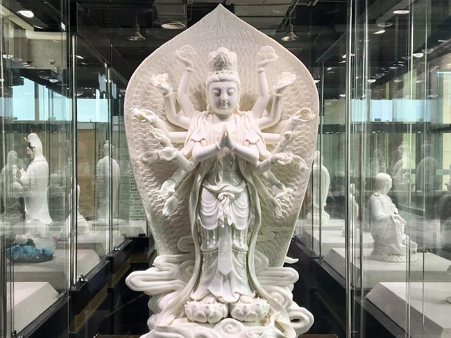 這101尊觀(guān)音瓷雕瓷質(zhì)潔白,如脂似玉,工藝精湛,藝術(shù)高超,其造像情態(tài)各異,紋飾多樣,規(guī)格不壹,坐臥行立,千姿百態(tài),各臻其妙。每尊觀(guān)音都?xì)忭嵣鷦?dòng),形神合壹,堪稱(chēng)德化白瓷的經(jīng)典薈萃,是舉世公認(rèn)的白瓷創(chuàng)作藝術(shù)珍品,是“來(lái)自世界瓷都的絕倫藝術(shù),海上絲綢之路的非遺經(jīng)典”。
