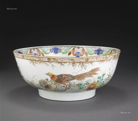 18世紀(jì)多彩描金花鳥圖外銷瓷盌