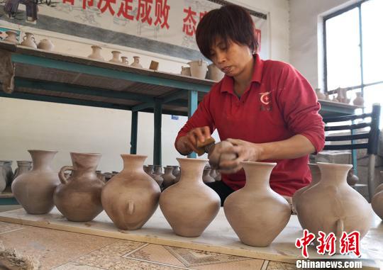 近年來(lái),甘肅省白銀市平川區(qū)以打造“西部陶都”為目標(biāo),逐步形成集技術(shù)研發(fā)、產(chǎn)業(yè)發(fā)展、文化創(chuàng)新、生產(chǎn)銷(xiāo)售為一體的陶瓷產(chǎn)業(yè)體系。圖為平川區(qū)陶瓷小鎮(zhèn)藝人制作陶瓷。