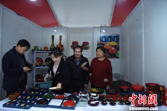 臺(tái)灣參展商吳樹(shù)發(fā)展示了其手工制作的木質(zhì)繪畫(huà)作品,博得不少大陸客商的青睞!