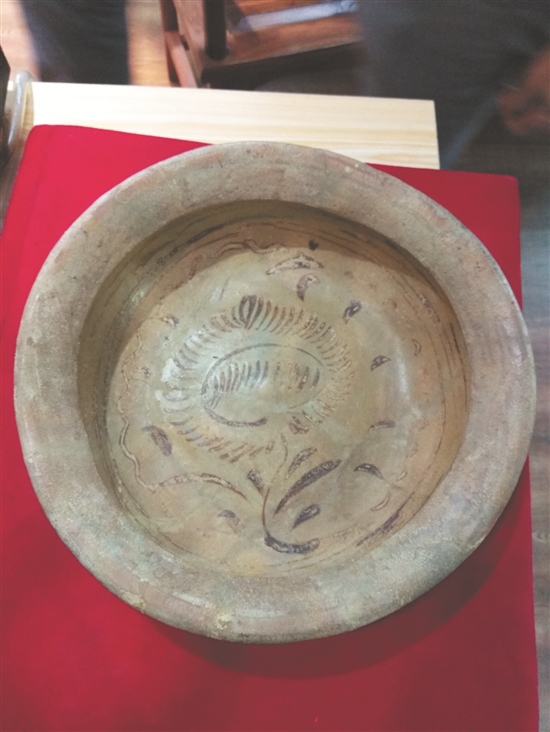 “這件是外銷往菲律賓的葵花盆,一位朋友從拍賣行拍得,后來轉(zhuǎn)賣給我。”郭福榮手持青釉褐彩葵花盆介紹,磁灶窯產(chǎn)品生產(chǎn)工藝博釆眾長,獨具特色,深受海外歡迎。