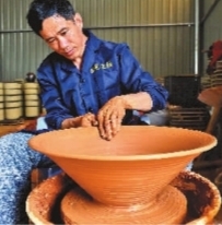 福建省建甌市北苑皇綱工藝廠工人采用傳統(tǒng)工藝仿制大型建盞。新華社發(fā)
