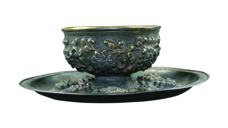 溧陽市博物館所藏這套通體牡丹纏繞、頗具富貴雍容之氣的銀托盞,在當(dāng)時(shí)也可算是一件高檔次的酒具了。