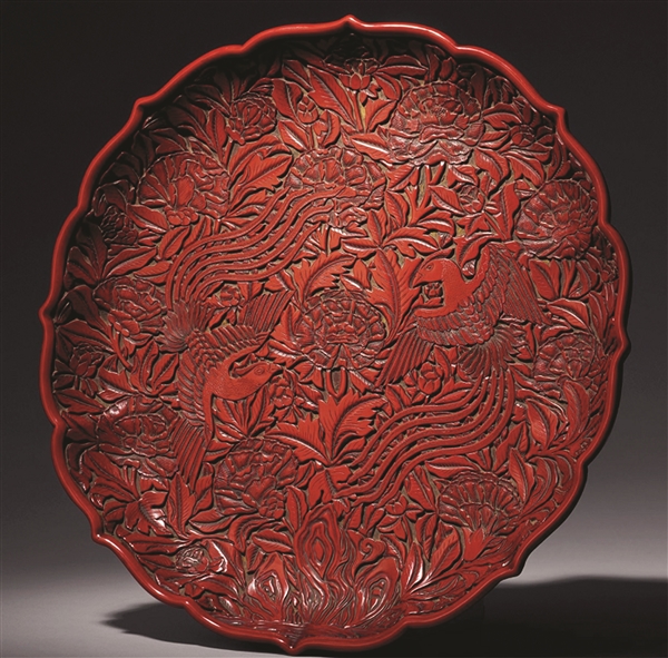 元-明初 剔紅花鳥(niǎo)紋菱口大盤(pán)