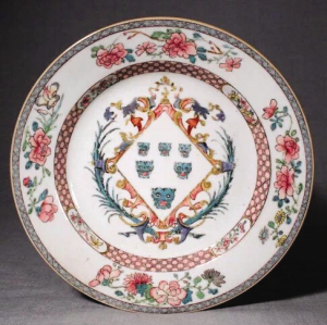 紋章瓷是外銷瓷中的一個(gè)特殊種類,始于16世紀(jì),于18世紀(jì)達(dá)到頂峰,因器物表面直接繪有家族徽章圖案而得名,是由中國(guó)工匠按照歐美訂購(gòu)商所提供的品種、造型、紋飾圖案進(jìn)行彩繪燒制而成,屬于“來(lái)樣加工”的定制瓷器。與普通的貿(mào)易外銷瓷不同,紋章瓷是為具有特殊身份的皇室成員、政府官員、豪紳貴族、特殊協(xié)會(huì)或公司所定制的,制作上最為精美,在當(dāng)時(shí)歐美屬于頂級(jí)奢侈品,堪稱外銷瓷中的“官窯”。