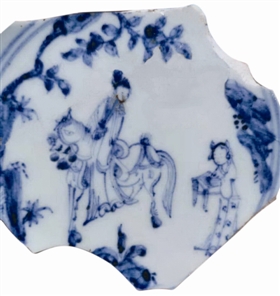 這幅光緒年間的瓷畫(見圖),從畫面看,畫中只有兩人,夫人盛裝立在馬前,侍女搬櫈子過來,準(zhǔn)備侍候夫人上馬。人物主次大小布局的秩序非常合理,有樹木、花草、山石,畫面顯得活潑而生動。作為全畫中心人物的“夫人”正待上馬,與前來侍騎的侍女有照應(yīng)盼顧,近處點綴了山石和綠樹,讓畫面集中、完美地統(tǒng)一了起來。想必是工匠于想象中,演繹了天寶年間玄宗寵妃玉環(huán)的三姐虢國夫人盛裝準(zhǔn)備出游的畫面一角。