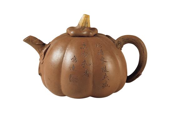 我個人覺得水平最高的還是陳鳴遠(yuǎn),清朝順治至康熙間人。他繼承了明代文人壺樸素高雅的造型,又著重發(fā)展了寫實的自然形的壺。他有很高的文化素養(yǎng),在壺上刻的字有很深的含義,書法也有晉唐之風(fēng)。他的名作之一蠶桑壺,現(xiàn)藏于香港中文大學(xué)文物館,壺身上有幾只蠶在吃葉子,很自然,不花哨,但極其精妙。陳鳴遠(yuǎn)所有的壺都很好,這也是紫砂界公認(rèn)的。