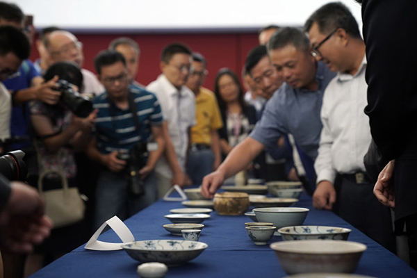 8月13日,嘉賓正在觀看捐贈(zèng)的瓷器。