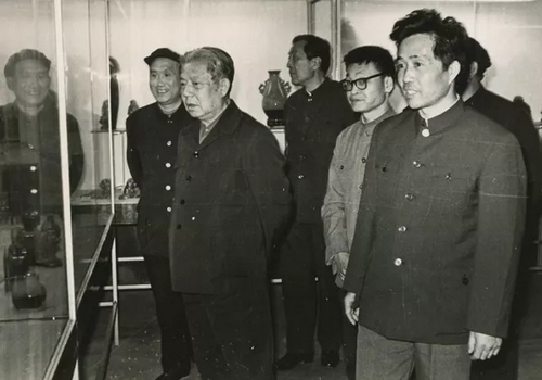△ 1983年4月12日,時任中宣部部長鄧力群參觀視察省硅酸鹽研究所,時任淄博市委副書記杜祥榮(右一)陪同參觀。