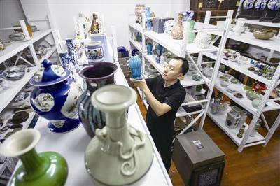 不過(guò),王亮也有“看走眼”的時(shí)候。隨著國(guó)內(nèi)外古玩市場(chǎng)逐漸升溫,買到假貨、仿貨的概率也在上升。為此,他要經(jīng)常跑到景德鎮(zhèn),去觀摩當(dāng)?shù)丶妓嚫叱慕橙藗冎谱鞣鹿糯善鳌?ldquo;鑒別一個(gè)瓷器真假,有時(shí)候要分解成100個(gè)部位去觀察,只要有一處‘不真’,就說(shuō)明它是假的。”王亮說(shuō),那些“看走眼”的瓷器都被自己專門存放起來(lái),以供反思學(xué)習(xí)。