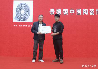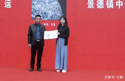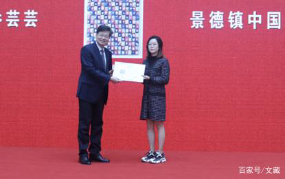 (景德鎮(zhèn)市文廣新旅局副局長(zhǎng)陳一奇為曹建文教授頒發(fā)證書(shū))