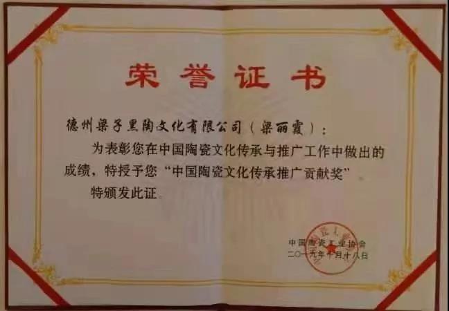 德州梁子黑陶文化有限公司董事長(zhǎng)梁麗霞榮獲中國(guó)陶瓷文化傳承推廣貢獻(xiàn)獎(jiǎng);