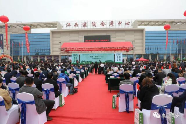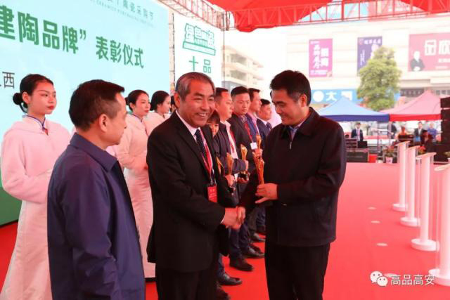 開幕式上,市委書記袁和庚為獲得“2019高安陶瓷十大品牌”企業(yè)頒獎。出席開幕式的領(lǐng)導(dǎo)嘉賓共同為第五屆中國(高安)陶瓷采購節(jié)啟幕。
