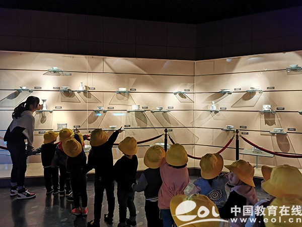 有個(gè)地方叫“南宋官窯博物館”,那里有更漂亮的瓷器。于是老師帶著孩子們踏上了博物館瓷器之旅,小朋友們一到展廳,講解員就帶領(lǐng)著他們開始了參觀,琳瑯滿目,形形色色。在這里孩子們看到了陳列在玻璃柜內(nèi)各種各樣與幼兒園不一樣的瓷器:瓷碗、瓷茶壺、瓷花瓶等,它們形狀不一樣,花紋也不一樣,講解員帶領(lǐng)小朋友一邊欣賞一邊講解,介紹了陶瓷的一些基本知識(shí),一件件精美的陶藝作品,一個(gè)個(gè)關(guān)于作品的故事深深地吸引著小朋友。