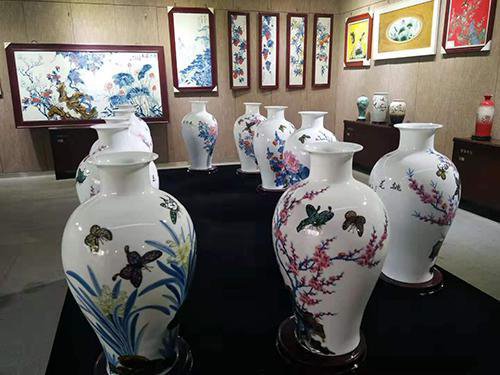 本次展覽共展出了林衛(wèi)國(guó)師徒精心制作的二百余件工藝品,琳瑯滿目的青花瓷、青花斗彩、青花釉里紅、古彩、粉彩、新彩等令人目不暇接。