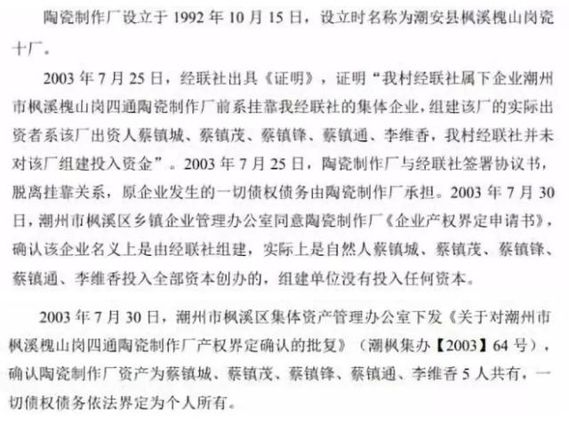 陶瓷企業(yè)大多數(shù)由鄉(xiāng)鎮(zhèn)企業(yè)改制而來,中間經(jīng)歷過太多次增資擴(kuò)股、新老交替等等,這都是一本糊涂賬。