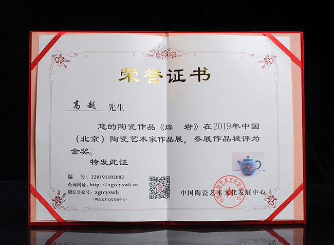 2019年獲“中國(guó)陶瓷藝術(shù)名家”稱號(hào)。