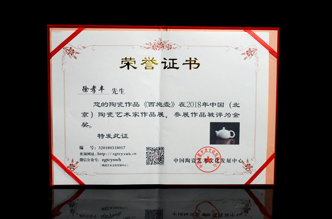 《西施壺》在2018年中國(北京)陶瓷藝術(shù)家作品展,參展作品被評為金獎