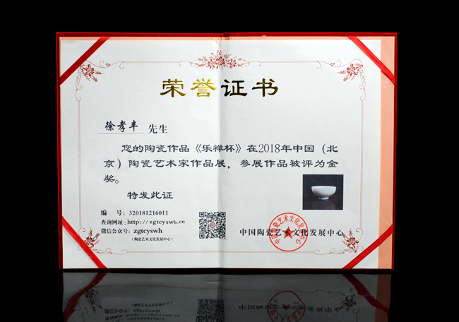《樂禪杯》在2018年中國(北京)陶瓷藝術(shù)家作品展,參展作品被評為金獎