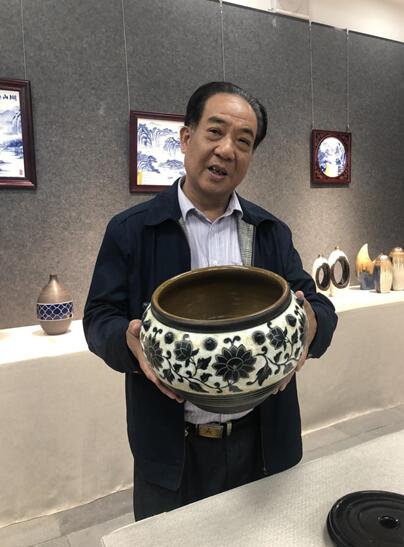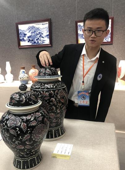 發(fā)源陶瓷有限公司總經(jīng)理鄧詩(shī)優(yōu)告訴記者,“我手持的作品是仿古的藍(lán)彩,是去北京和廣西時(shí),在博物館獲取的靈感。發(fā)源陶瓷此次參展帶來(lái)了二十件展品,共十四組,有仿古、藍(lán)彩的,也有釉面的,造型有聚寶缸和壺等。”