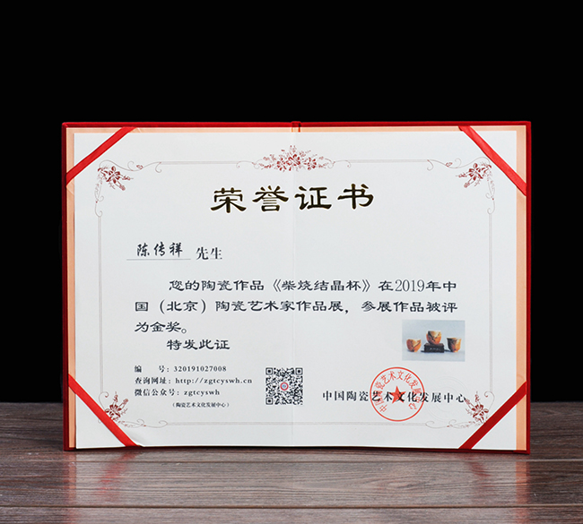 近日,由中國陶瓷藝術名家陳傳祥創(chuàng)作的《柴燒結晶》杯榮獲2019年中國(北京)陶瓷藝術家作品展金獎。