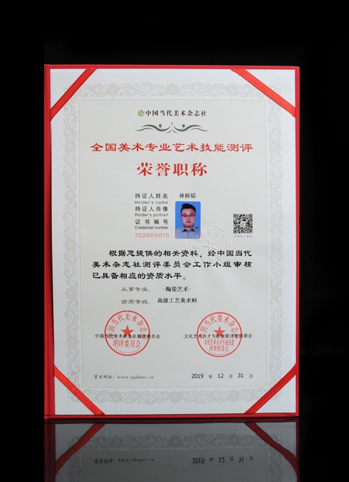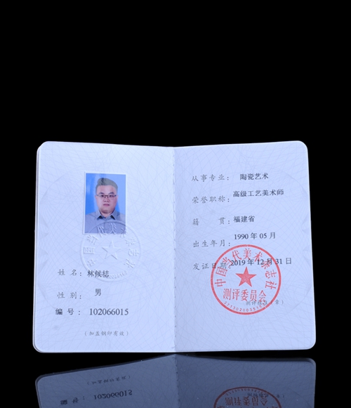 林候梽,男,1990年出生于中國(guó)瓷都德化,畢業(yè)于福建經(jīng)貿(mào)學(xué)校美術(shù)與裝潢設(shè)計(jì)專(zhuān)業(yè),從小深受瓷文化熏陶,耳濡目染的喜歡上陶瓷雕塑、手拉技藝。2015年回來(lái)進(jìn)了古精林瓷藝廠設(shè)計(jì)產(chǎn)品,運(yùn)營(yíng)管理,直到2019年初自己出來(lái)創(chuàng)辦了個(gè)人工作室,在此期間拜陳德化大師為師,學(xué)習(xí)雕塑。作品《盼》2019年9月20日在第七屆中國(guó)陶瓷名家名作展暨2019年陶瓷作品評(píng)比中榮獲金獎(jiǎng)。