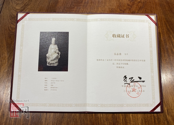 中國美術館館藏《蒲團觀音》證書