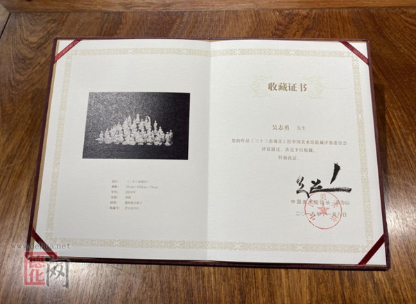 中國美術館館藏《三十三態(tài)觀音》證書