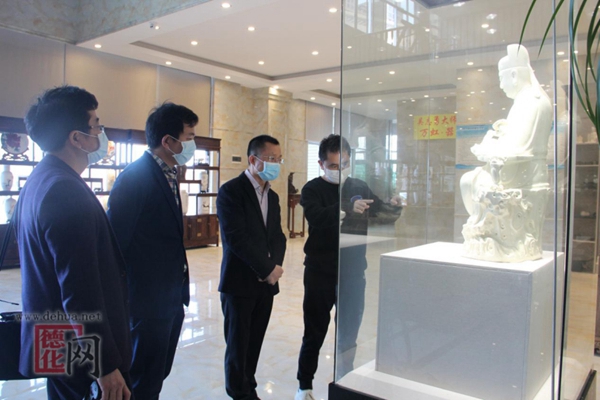 吳志勇與縣陶瓷辦負責人等交流《三十三態(tài)觀音》的創(chuàng)作構思