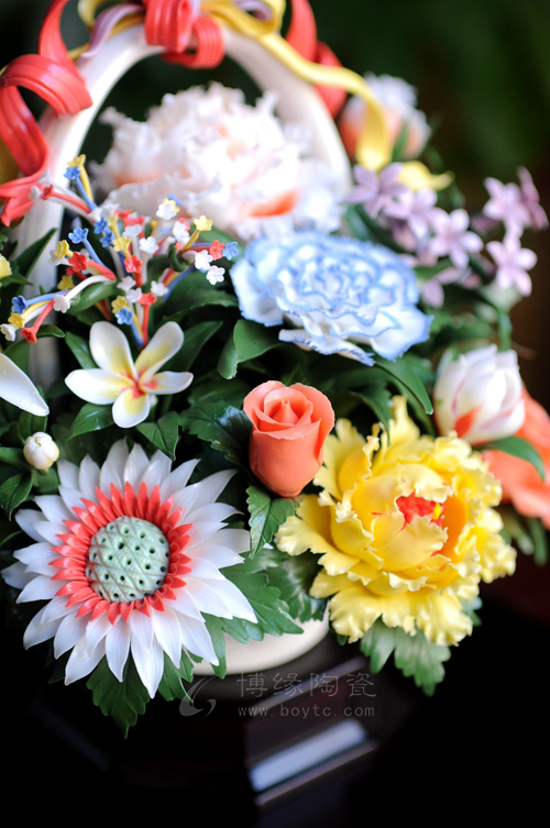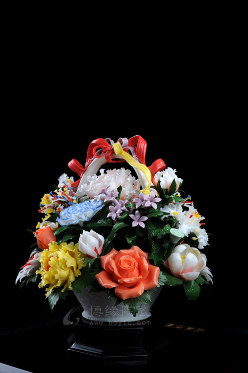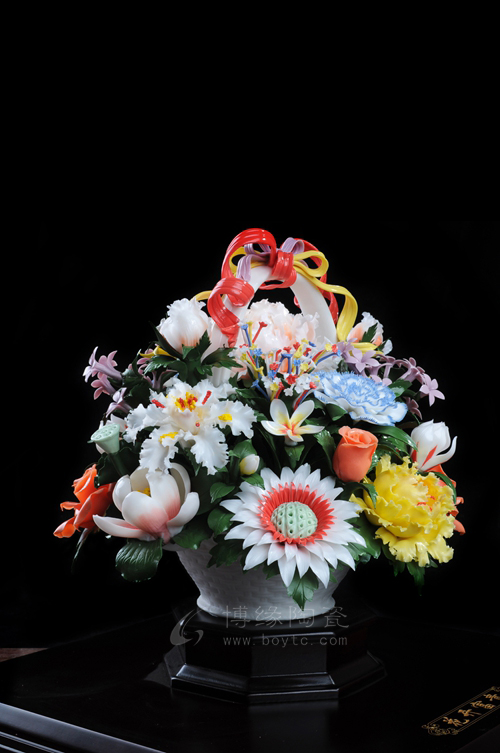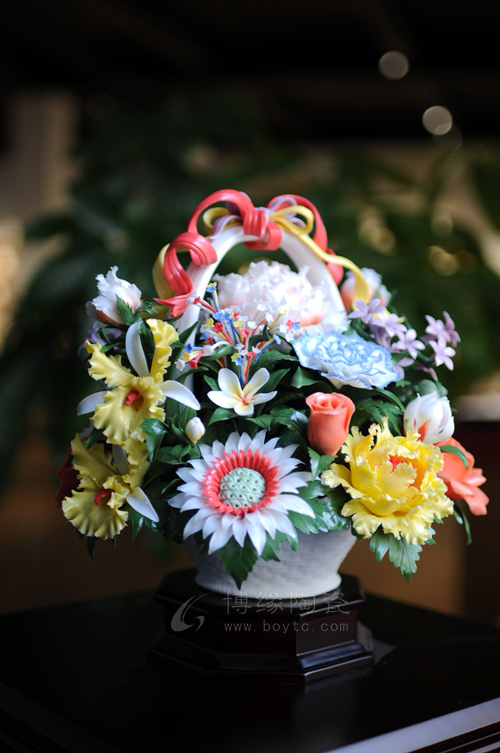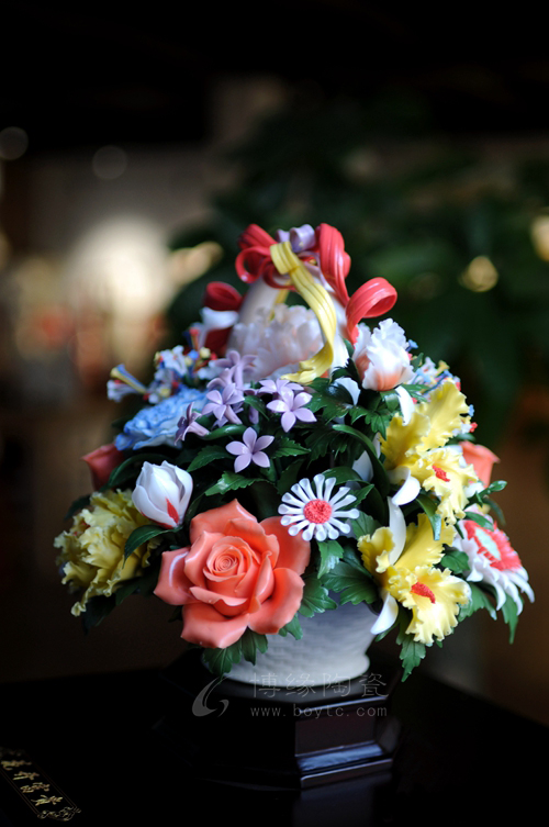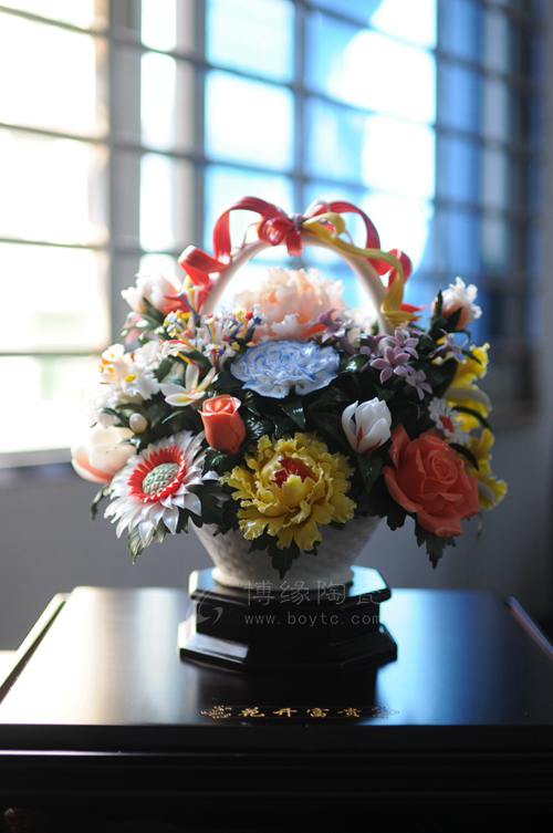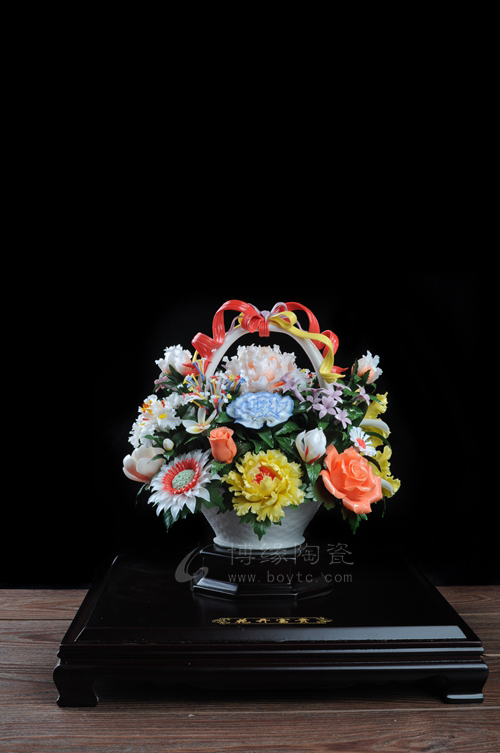 瓷花作為陶瓷藝術(shù)品有著其獨(dú)特的魅力所在,瓷花創(chuàng)作并不以單一形式表現(xiàn),而是與其他的器物搭配,并突出瓷花的主題。