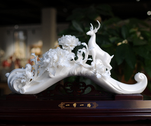 德化做為“中國白“的故鄉(xiāng),其瓷土可塑性好,表現(xiàn)力強(qiáng);德化的陶瓷藝術(shù)家以德化特有的溫潤如玉,素凈淡雅的”中國白“為胎質(zhì),塑造了栩栩如生的鹿和千嬌百媚的鮮花。