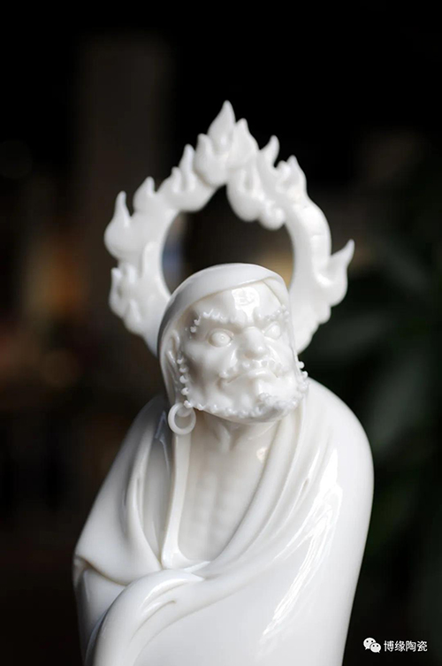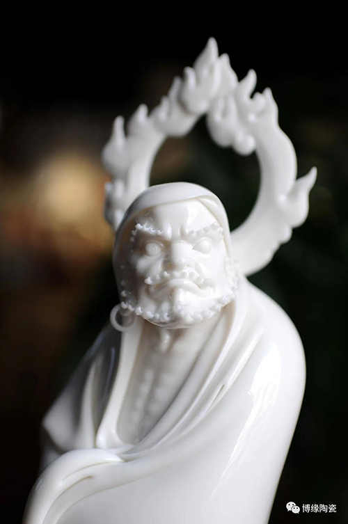 德化瓷器,以白瓷為最;白瓷之中,又以佛像為最。德化白瓷所塑佛像有性格鮮明、造型優(yōu)美、神態(tài)逼真、風(fēng)格洗練的特點(diǎn)。有一種單純的雕塑美和原材料的質(zhì)地美,最能體現(xiàn)佛教樸素、平和的思想。