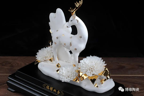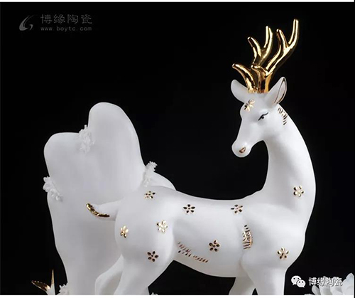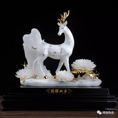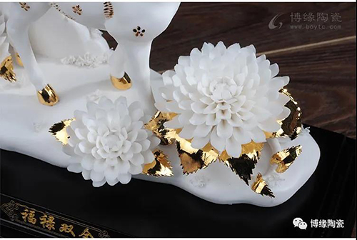 德化做為“中國白“的故鄉(xiāng),其瓷土可塑性好,表現(xiàn)力強(qiáng);德化的陶瓷藝術(shù)家以德化特有的溫潤如玉,素凈淡雅的”中國白“為胎質(zhì),塑造了栩栩如生的梅花鹿和千嬌百媚的鮮花。