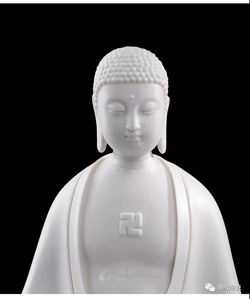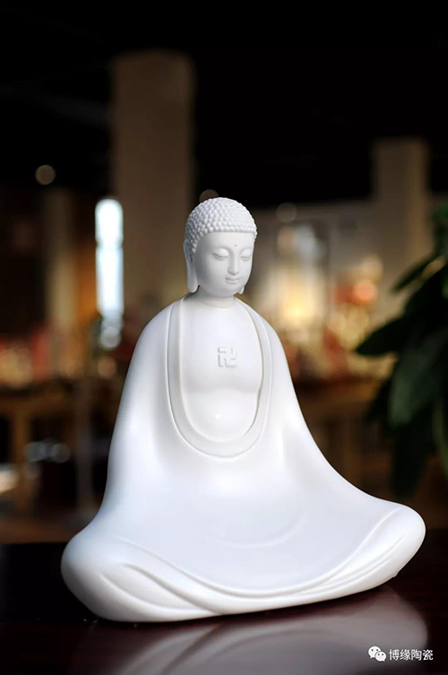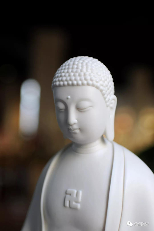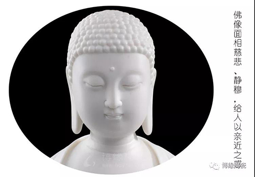 德化瓷器,以白瓷為最;白瓷之中,又以佛像為最。德化白瓷所塑佛像有性格鮮明、造型優(yōu)美、神態(tài)逼真、風(fēng)格洗練的特點。有一種單純的雕塑美和原材料的質(zhì)地美,最能體現(xiàn)佛教樸素、平和的思想。