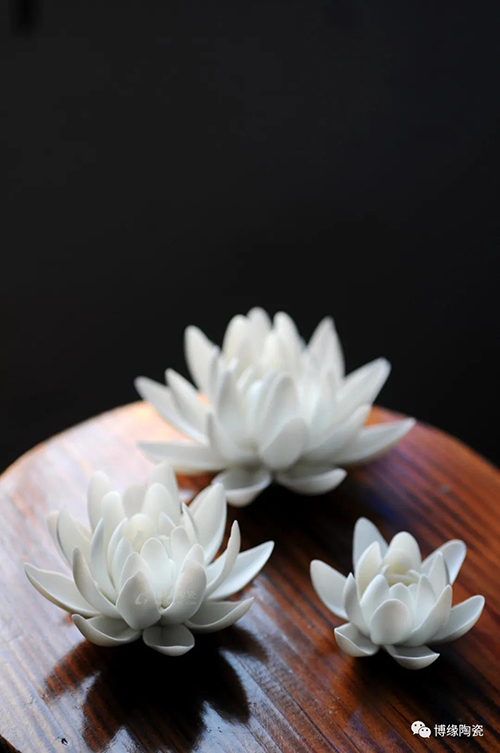 德化做為“中國(guó)白“的故鄉(xiāng),其瓷土可塑性好,表現(xiàn)力強(qiáng);德化的陶瓷藝術(shù)家以德化特有的溫潤(rùn)如玉,素凈淡雅的”中國(guó)白“為胎質(zhì),塑造了千嬌百媚的鮮花。