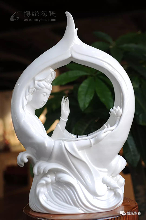 德化瓷器,以白瓷為最;白瓷之中,又以佛像為最。德化白瓷所塑佛像有性格鮮明、造型優(yōu)美、神態(tài)逼真、風格洗練的特點。有一種單純的雕塑美和原材料的質(zhì)地美,最能體現(xiàn)佛教樸素、平和的思想。