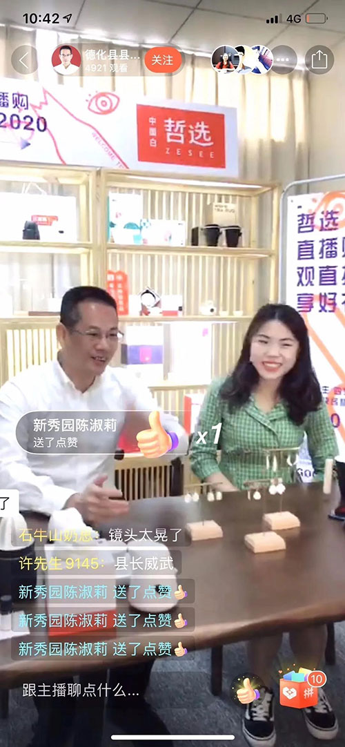 4月24日,德化縣長(zhǎng)黃文捷走進(jìn)直播室推介德化陶瓷,圈粉無(wú)數(shù),引網(wǎng)友廣泛關(guān)注。此次直播節(jié)活動(dòng),推動(dòng)和促進(jìn)德化“陶瓷+電商”線上線下資源全面對(duì)接和深度融合,提高消費(fèi)者消費(fèi)體驗(yàn),推廣德化縣本土網(wǎng)紅特色產(chǎn)品,實(shí)現(xiàn)商家與個(gè)體消費(fèi)者之間的全方位融合。