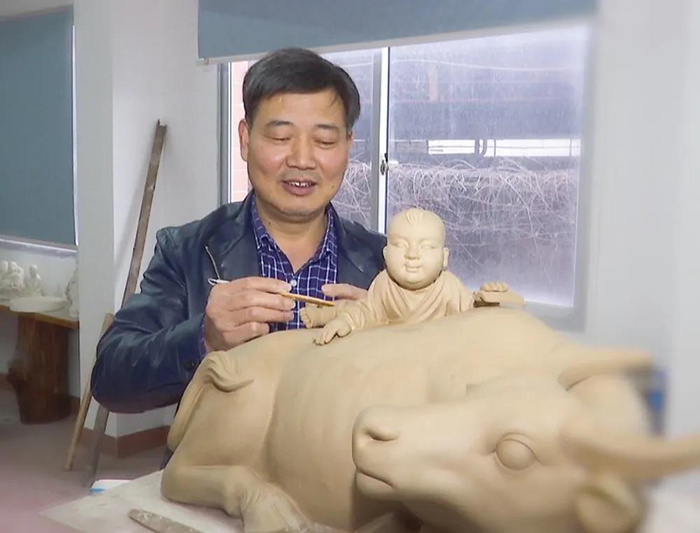 中國(guó)工藝美術(shù)大師陳明良創(chuàng)作“吉祥牛”、“如意牛”;