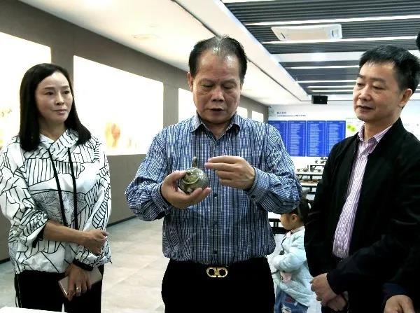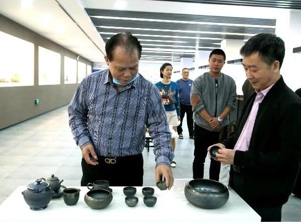 觀展過程中,陳建新會長充分肯定了本次柴燒作品展的舉辦,并細細觀看了每一組參展作品,認真了解了德化當前柴燒陶瓷的發(fā)展情況,同時,還時不時與縣政府副處級干部徐文福、陶藝協(xié)會會長孫義淵、參展創(chuàng)作者劉川等,就柴燒作品工藝、柴燒藝術發(fā)展的話題展開了交流。